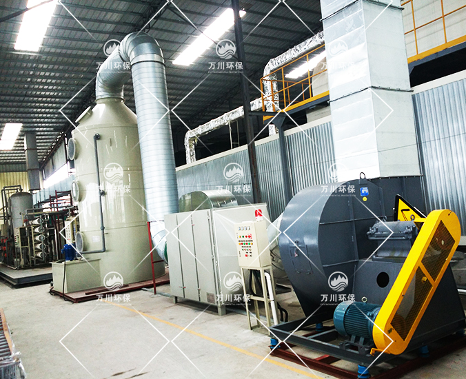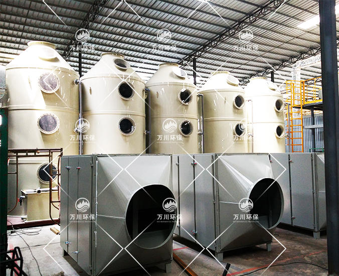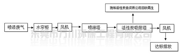 根據(jù)廠方提供的資料及現(xiàn)場(chǎng)勘察的情況。其噴漆廢氣的來源主要為無塵噴漆車間內(nèi)的5條自動(dòng)噴涂線。在生產(chǎn)過程中有噴漆,該工序產(chǎn)生了一定量含三苯有機(jī)廢氣和噴漆粉塵,該廢氣不僅對(duì)環(huán)境造成污染,而且對(duì)人體有較大的危害作用,同時(shí)也破壞了周邊的環(huán)境,造成了不良的影響,需進(jìn)行處理后排放。我們工程師分析了該廢氣的特點(diǎn)和以往的案例經(jīng)驗(yàn),采用了“水簾柜+噴淋塔+活性炭吸附塔”這套解決方案。
