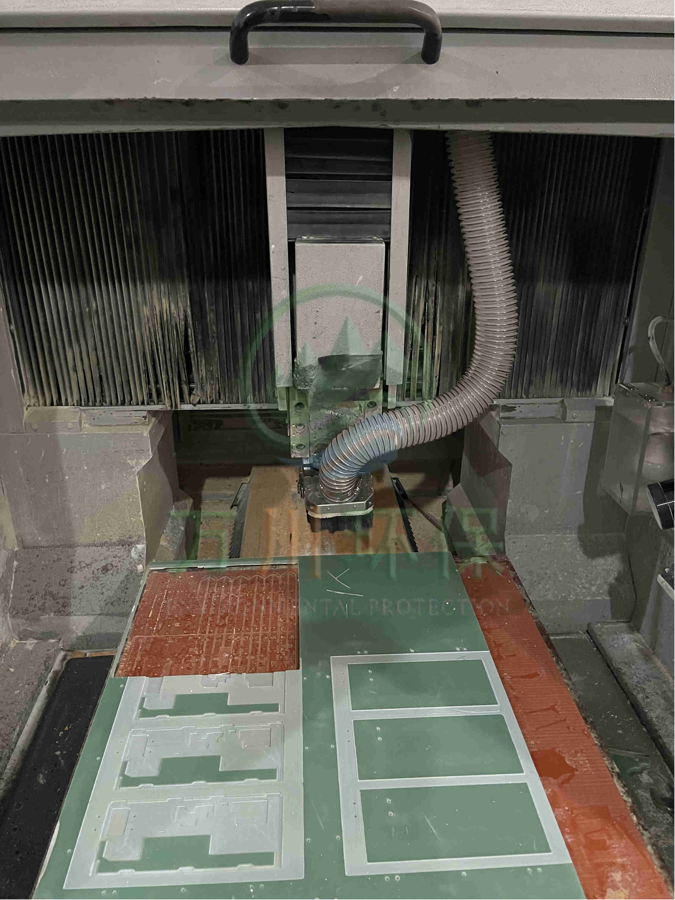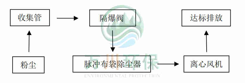 精雕機工作時產(chǎn)生的粉塵通過集氣罩、吸塵軟管進入到脈沖布袋除塵器中過濾凈化,粉塵落入灰斗,凈化后的廢氣通過系統(tǒng)風(fēng)機達標排放。