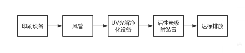 生產(chǎn)過程中產(chǎn)生的印刷廢氣通過風(fēng)機的作用下進入風(fēng)管,首先廢氣會進入UV光解凈化設(shè)備,然后印刷廢氣會進入活性炭吸附裝置,最后達標(biāo)排放。
