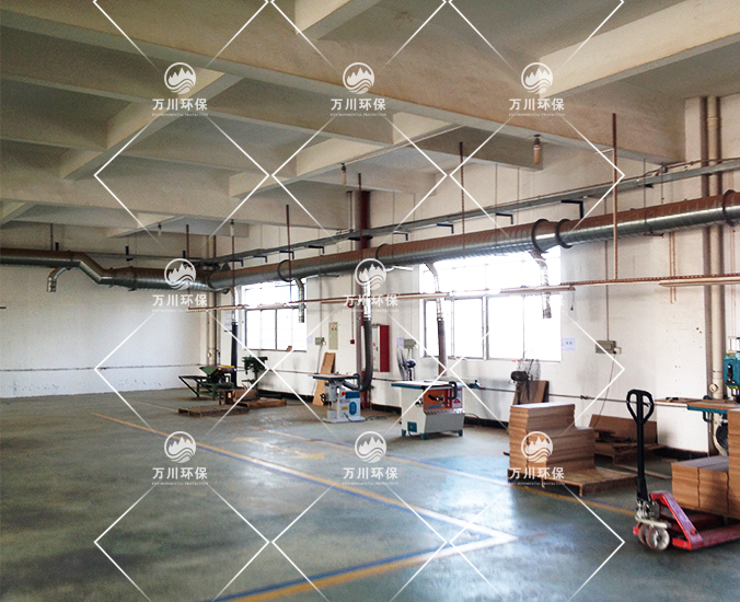 在木工車間開料、刨花、裁剪工序中會產生大量粉塵,為此正碩公司負責人向本公司采購一套中央系統系統。東莞市萬川環保工程有限公司本著如下設計原則: